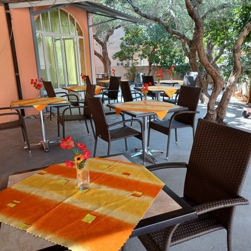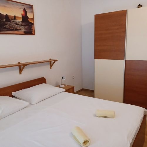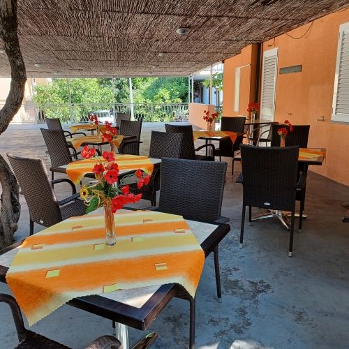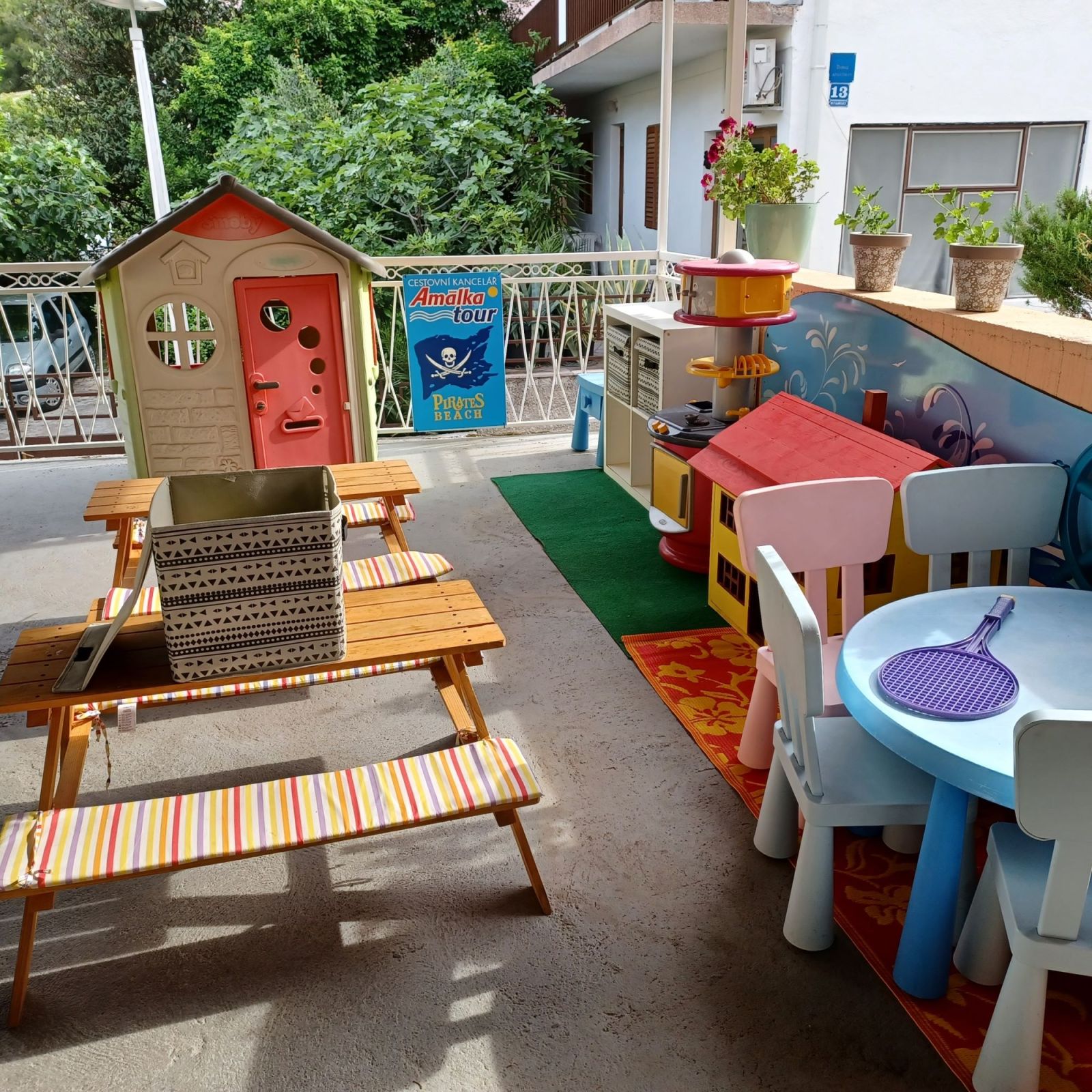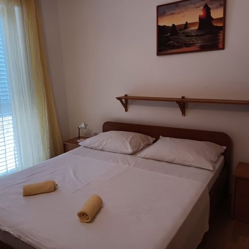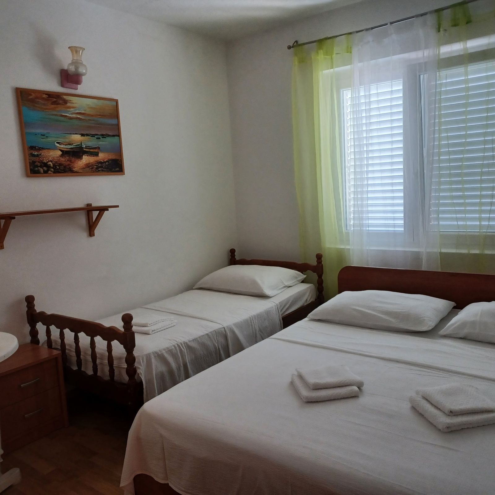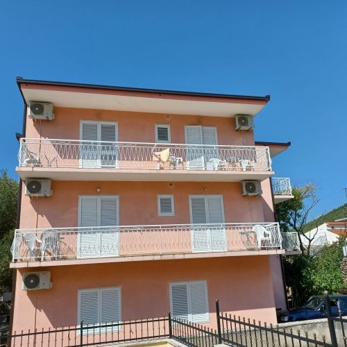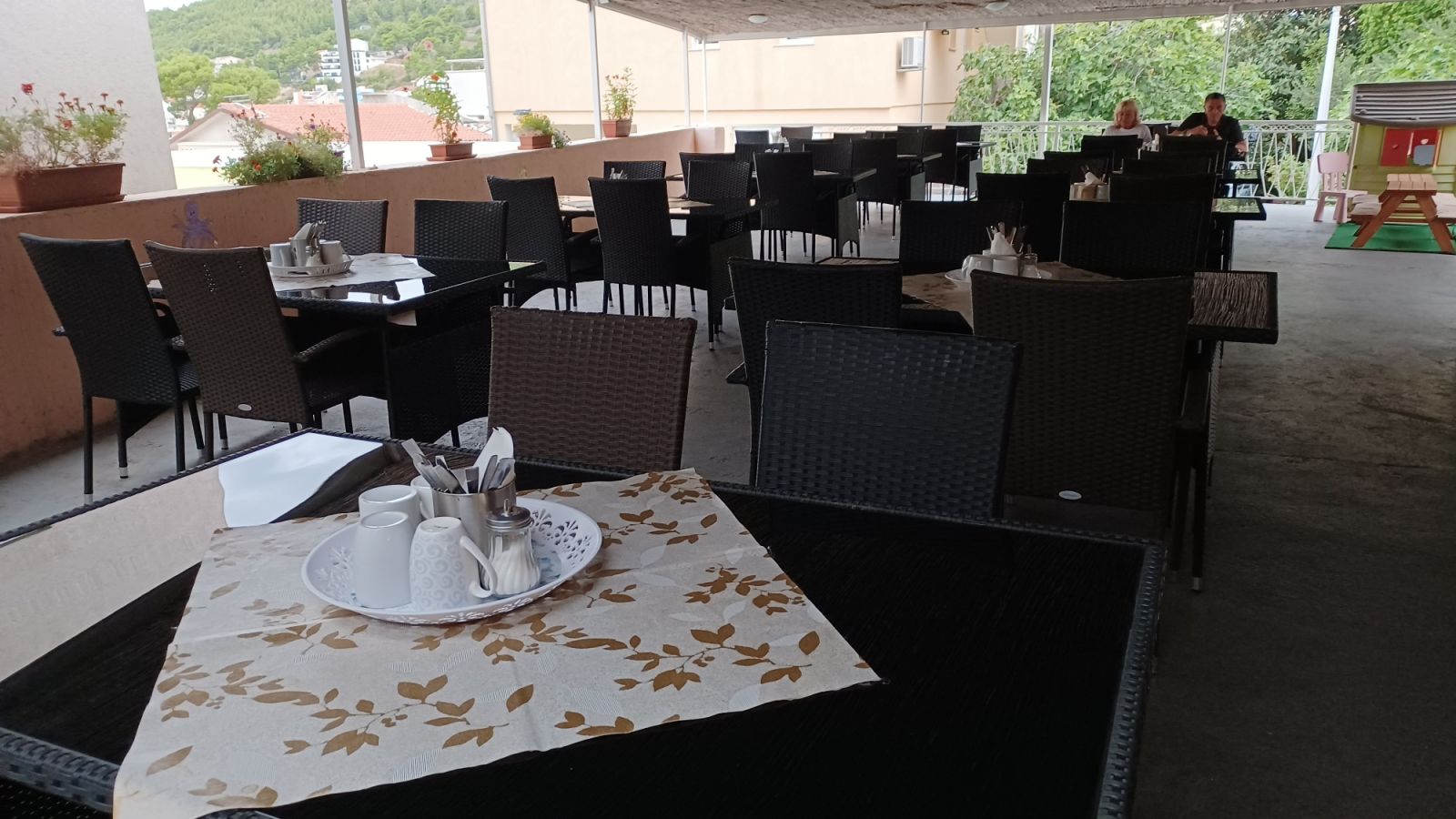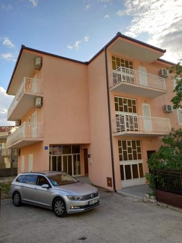 Nachází se v klidnější části Bašky Vody. Vzdálenost od pláže je 350 m a od centra 200 m. K ubytování nabízíme 2 až 3lůžkové prostorné a vkusně zařízené pokoje, vždy s vlastním sociálním zařízením, sprchovým koutem, balkonem, s výhledem na hory, některé na moře. Všechny pokoje jsou vybavené klimatizací a mají společnou lednici na chodbě. Na 1. patře je k dispozici společná plně zařízená kuchyň pro případné vlastní vaření. Součástí penzionu je vnitřní restaurační jídelna a prostorná krytá venkovní terasa, která slouží pro všechny klienty s polopenzí a hlavně jako zázemí pro odjíždějící klienty do ČR. K dispozici je i sprchový kout a oddělené WC.  Je zde možné zakoupit různé občerstvení. Servíruje se jednotná polopenze. Parkování osobních automobilů je zajištěno na soukromém parkovišti přímo u penzionu.