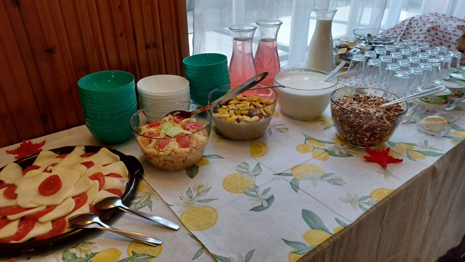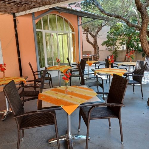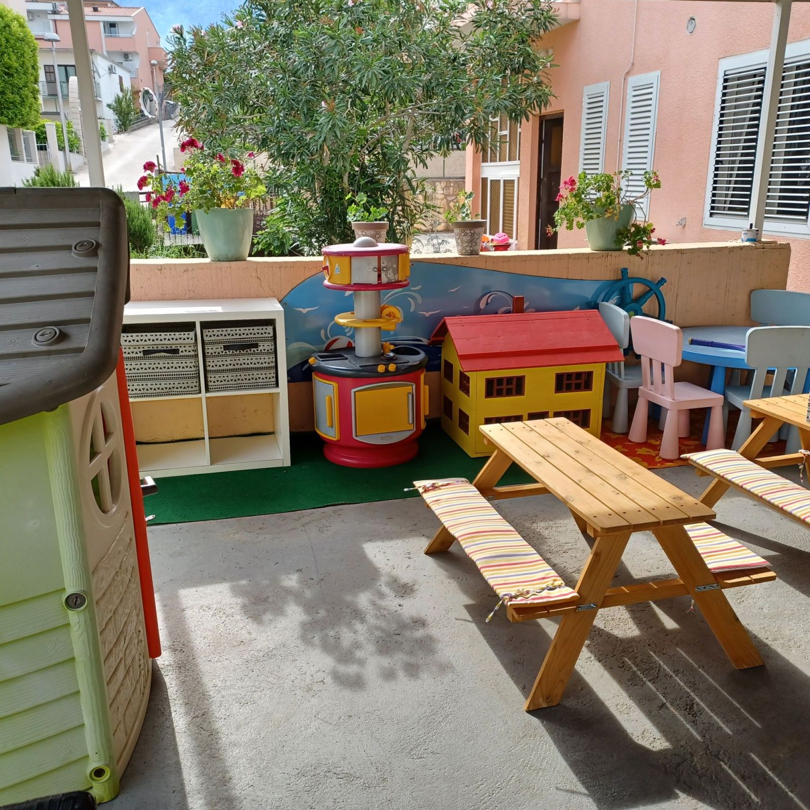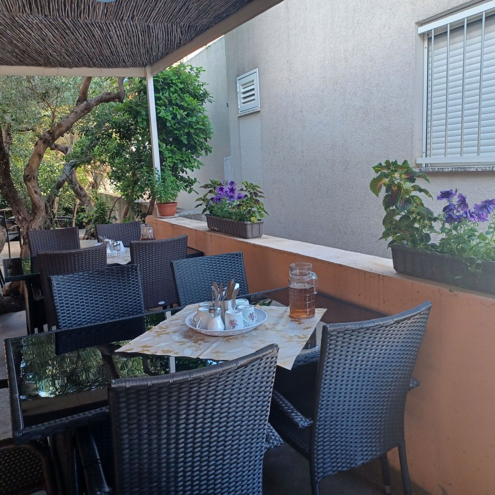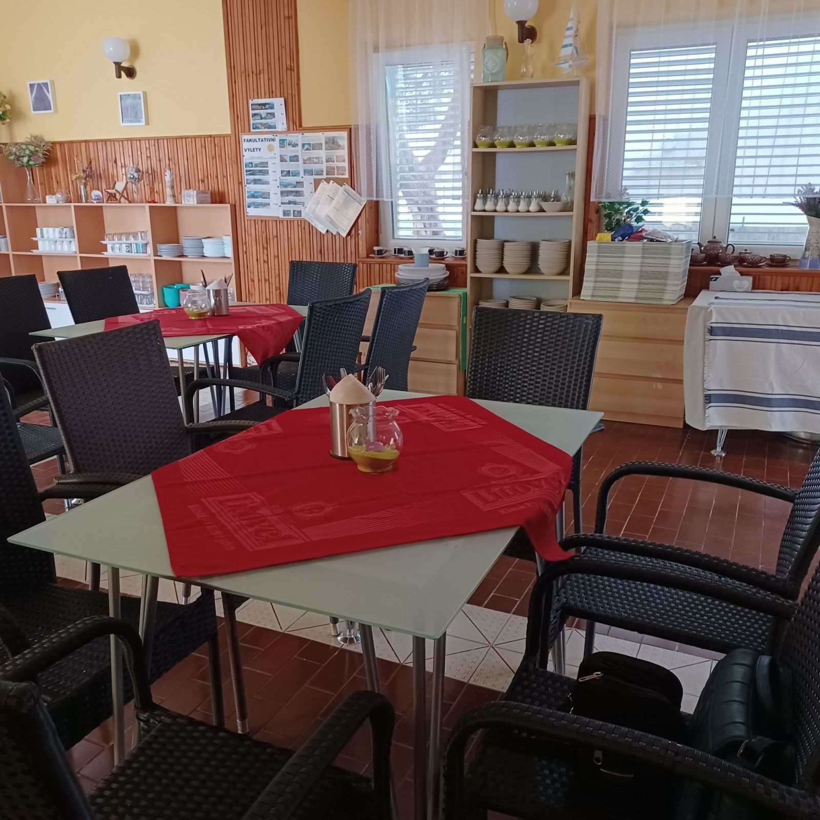 Nachází se v klidnější části Bašky Vody. Vzdálenost od pláže je 350 m a od centra 200 m. K ubytování nabízíme 2 až 3lůžkové prostorné a vkusně zařízené pokoje, vždy s vlastním sociálním zařízením, sprchovým koutem, balkonem, s výhledem na hory, některé na moře. Všechny pokoje jsou vybavené klimatizací a mají společnou lednici na chodbě. Na 1. patře je k dispozici společná plně zařízená kuchyň pro případné vlastní vaření. Součástí penzionu je vnitřní restaurační jídelna a prostorná krytá venkovní terasa, která slouží pro všechny klienty s polopenzí a hlavně jako zázemí pro odjíždějící klienty do ČR. K dispozici je i sprchový kout a oddělené WC.  Je zde možné zakoupit různé občerstvení. Servíruje se jednotná polopenze. Parkování osobních automobilů je zajištěno na soukromém parkovišti přímo u penzionu.