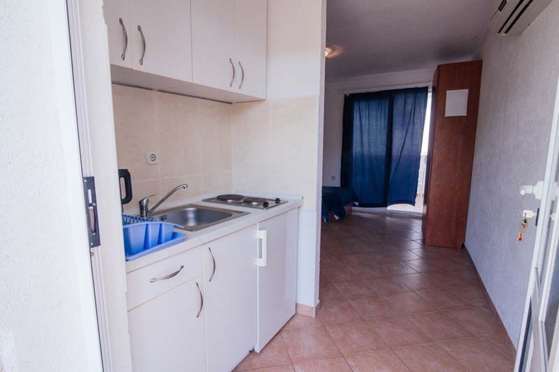 č.5 – 1/3 – studio s manželským lůžkem a pevným lůžkem, vybavený kuchyňský kout, sociální zařízení se sprchovým koutem, klimatizace, možnost přistýlky, balkon, boční výhled na moře.